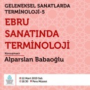 Geleneksel Sanatlar Derneği tarafından düzenlenen "Geleneksel Sanatlarda Terminoloji" etkinlik serisinin beşincisi "Ebru Sanatında Terminoloji" konusu üzerine Alparslan Babaoğlu'nun konuşmacı olarak katılımıyla 12 Mart 2019 tarihinde Pera Müzesinde gerçekleştirildi.