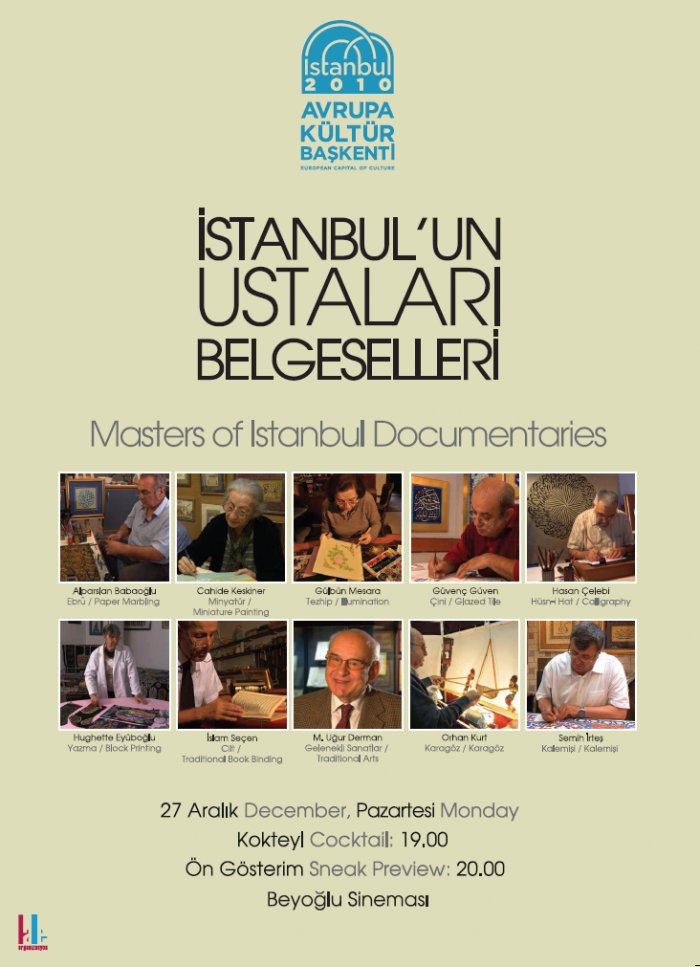As part of the activities of İstanbul 2010 European Culture of Capital, we organized the screening and launching of the Documentary on the Masters of İstanbul at Beyoğlu Movie Theater. The following artists are featured in the documentary.