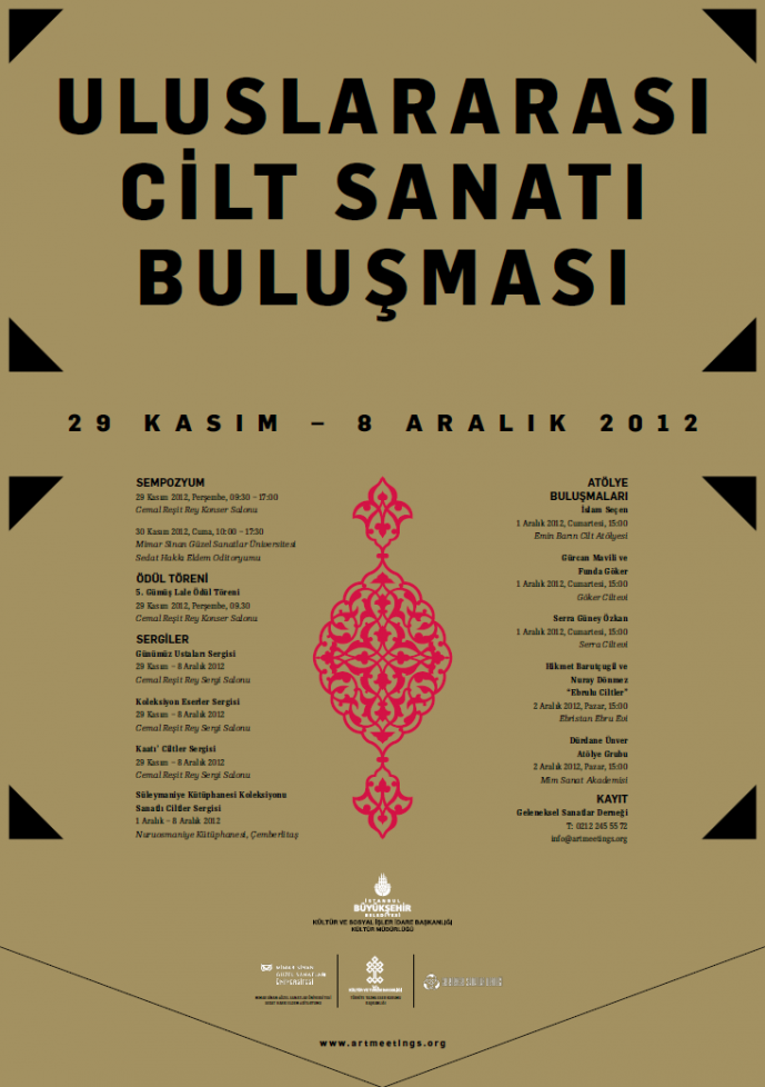 We organized the “International Binding Art Gathering” as the series of most comprehensive international events regarding the binding art, an important field among the arts related to the books. As part of 10-day events, we organized a 2-day symposium, three exhibitions, four workshops and the 5th Silver Tulip Award Ceremony at Cemal Reşit Rey Concert Hall and Mimar Sinan Fine Arts University. İslam Seçen won the award at the 5th Silver Tulip Award Ceremony. The events attracted great attention and we compiled their visual and textual contents and published in two volumes, one being the catalogue and other the book of proceedings.