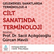 Geleneksel Sanatlar Derneği tarafından düzenlenen "Geleneksel Sanatlarda Terminoloji" etkinlik serisinin dördüncüsü "Cilt Sanatında Terminoloji" konusu üzerine Prof. Dr. Sacit Açıkgözoğlu ve Gürcan Mavili'nin konuşmacı olarak katılımıyla 19 Şubat 2019 tarihinde Pera Müzesinde gerçekleştirildi.